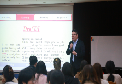 课程设计与分享环节,山东省第六届“超星杯”高校青年教师教学比赛一等奖获得者、鲁东大学外国语学院副教授毕晨光,结合传统文化进行课程示范,与学生现场互动精彩纷呈。杨清波教授针对外语课堂教学设计与团队建设进行经验分享。