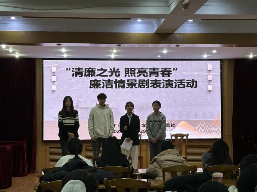 “清廉之光照亮青春”廉洁情景剧表演活动以生动、活泼的情景剧形式,精彩演绎了一个个感人至深的廉洁故事,使廉洁文化教育更接地气、更抵人心,引导广大青年学生树牢清正廉洁的价值理念,厚植廉洁文化土壤,为积极推动清廉学校建设,护航学院高质量发展营造了良好文化氛围。