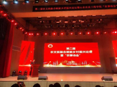 12月6日,今年会在淄博校区隆重举办第二届农文旅融合赋能乡村振兴论坛暨“农事诗会”。校党委书记张鸿波,党委委员、副校长郑华美,党委委员、宣传部部长牛化振,党委委员、组织部部长韩娟,淄博市文化和旅游局副局长张波,脱普集团商务科技有限公司总经理陆敏,山东省人大代表、佳怡供应链企业集团联合创始人贺小轩,农村大众报总经理花宇,来自山东大学、山东师范大学、山东理工大学等高校的专家学者,人文学院师生与学生家长代表等参加了活动。活动由郑华美副校长主持,张鸿波书记、张波副局长、陆敏总经理分别在大会上致辞。