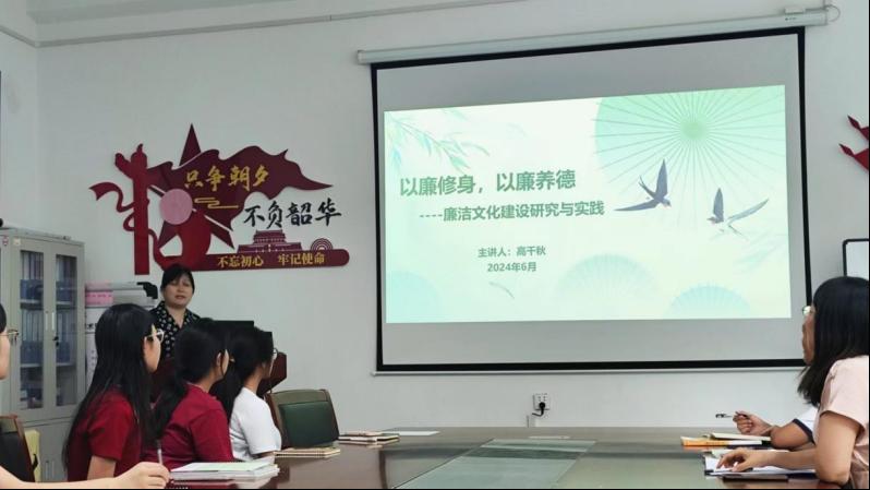 廉洁文化是廉洁的理论和行为方式及其相互关系的文化总和,是关于廉洁的知识、理念、制度及与之相对应的生活方式、行为规范的总概括。廉洁文化具有丰富的内涵。高千秋教授从廉洁文化建设的重要性、廉洁文化建设的实践方式方法、廉洁文化的推广和普及、廉洁文化的持续发展与创新等几个方面做了详细的阐述,并结合上级有关文件精神、廉洁文化建设具体要求等,总结了人文学院廉洁文化前期工作,对下一步工作做了规划和展望。