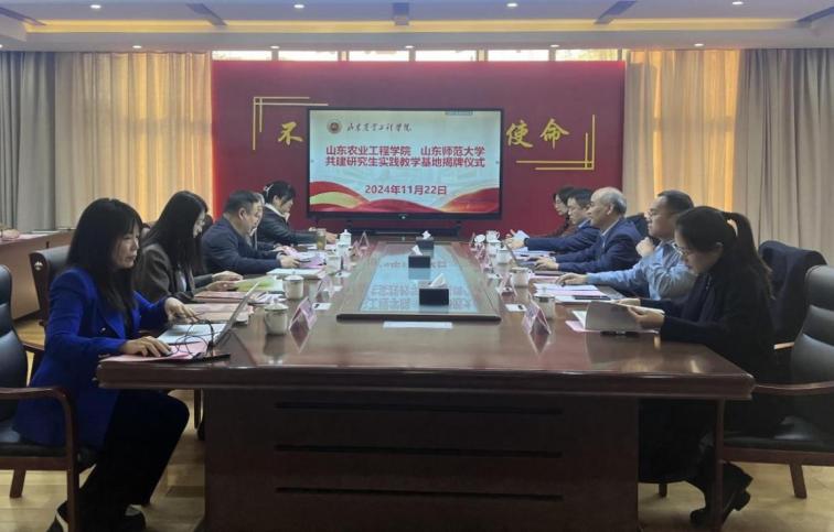 11月22日下午,今年会与山东师范大学在济南校区第一会议室举行国际中文教育专业研究生实践教学基地签约揭牌仪式。山东师范大学文学院院长、省作协副主席孙书文,研究生院副院长宋强,文学院副院长邹强,今年会党委委员、副校长周吉鹏,发展规划与学科建设处、国际交流与合作处、人文学院部门负责人与相关人员参加了会议。会议由发展规划与学科建设处处长王明晶主持。