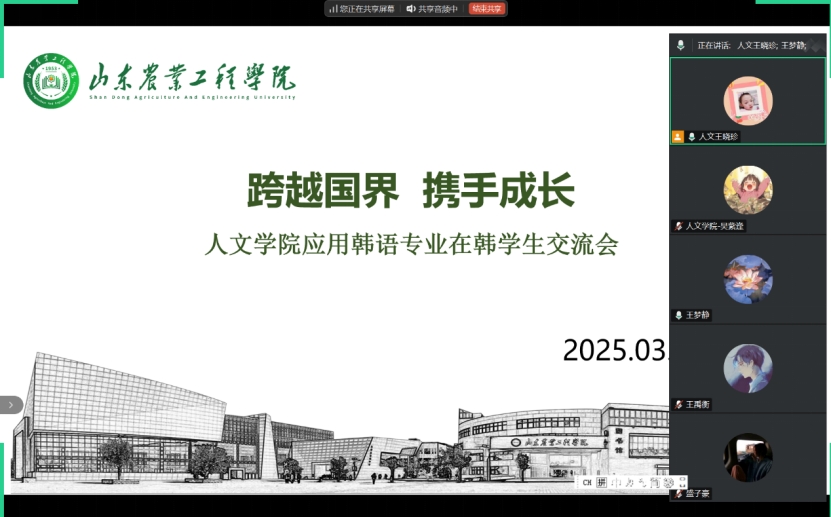 为加强应用韩语专业学生与在韩交流学习的同学之间的联系,分享彼此的学习和生活经验,共同促进中韩文化交流与理解,近日,人文学院应用韩语专业举办了一场别开生面的线上交流会。应用韩语专业部分教师和学生代表以及4位在韩国圆光大学交流学习的学生参加了此次交流会。