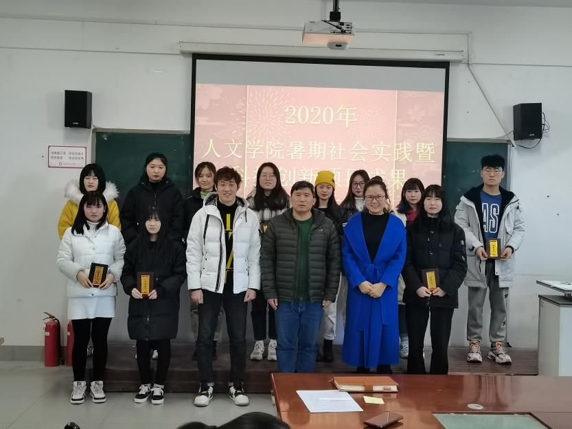 2020年12月3日,我院在济南校区2教410举行2020年暑期社会实践暨科技创新项目成果表彰大会,出席本次表彰大会的有人文学院党总支书副书记徐波、暑期社会实践优秀团队指导教师董婧、人文学院辅导员孙志伟及社会实践获奖代表。