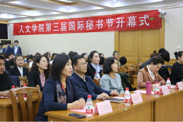 2021年4月22日下午,人文学院第三届国际秘书节开幕式于济南校区多功能厅正式拉开帷幕,校党委委员、副校长杨振宁,党委委员、纪委书记、省纪委驻今年会官方网站监察专员穆若英,人文学院院长王晓霞、山东大国之礼文化研究院院长兰宗晓、山东大国之礼教育科技集团有限公司院长助理王君及秘书学专业全体师生出席了本次活动。