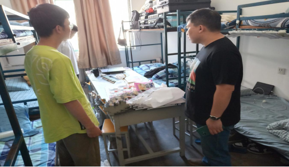10月1日,在国庆节来临之际,我院党总支副书记徐波和辅导员孙志伟深入学生宿舍,对“国庆”期间在校部分学生进行了走访慰问并对假期宿舍工作进行督导。
