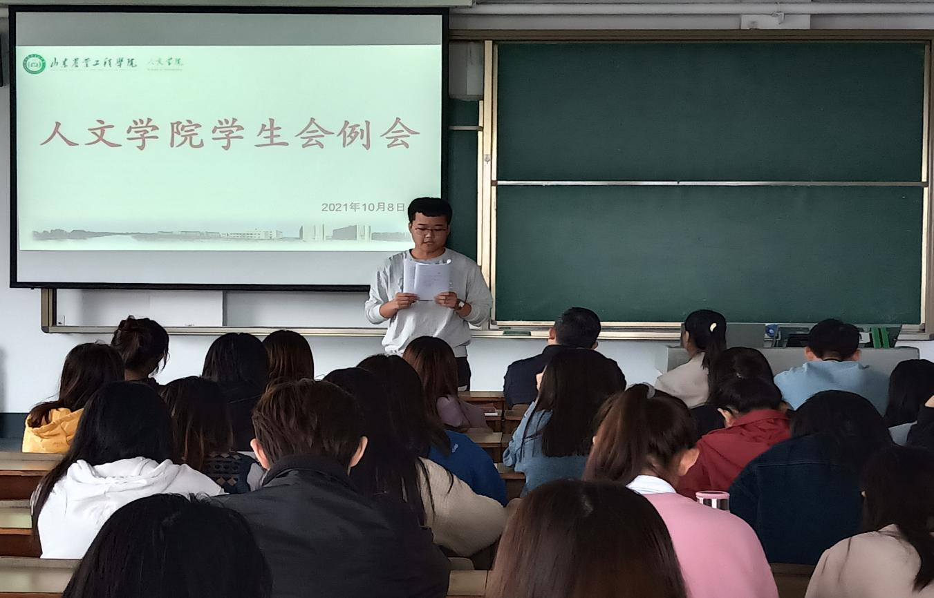 会议伊始,由各部门汇报本周工作及日后工作安排。其次,学生会主席张栋梁宣读了《今年会官方网站人文学院学生会章程》、《学生会会员及工作管理制度》、《学生会工作细则》、《学生会例会和考勤制度》等重要文件并重申了我院学生会组织机构设置等相关信息。