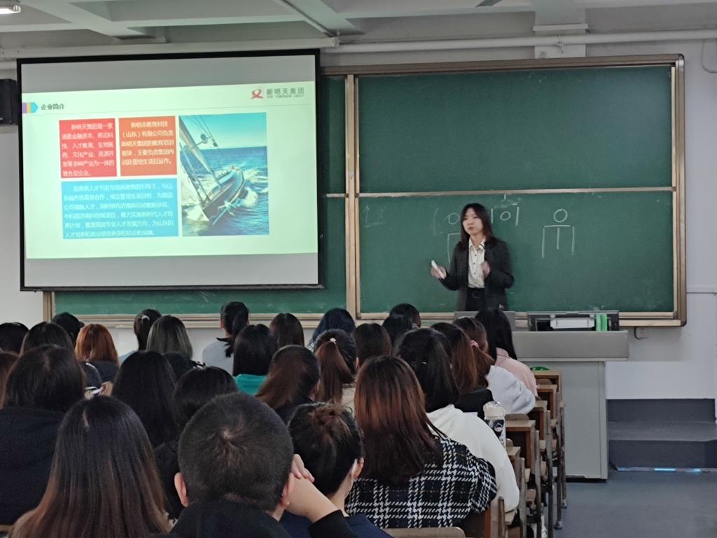 2021年10月14日下午,人文学院携手新明天集团在济3教601室召开了管培生招聘宣讲会,人文学院应届毕业生积极参与,深入了解企业文化。