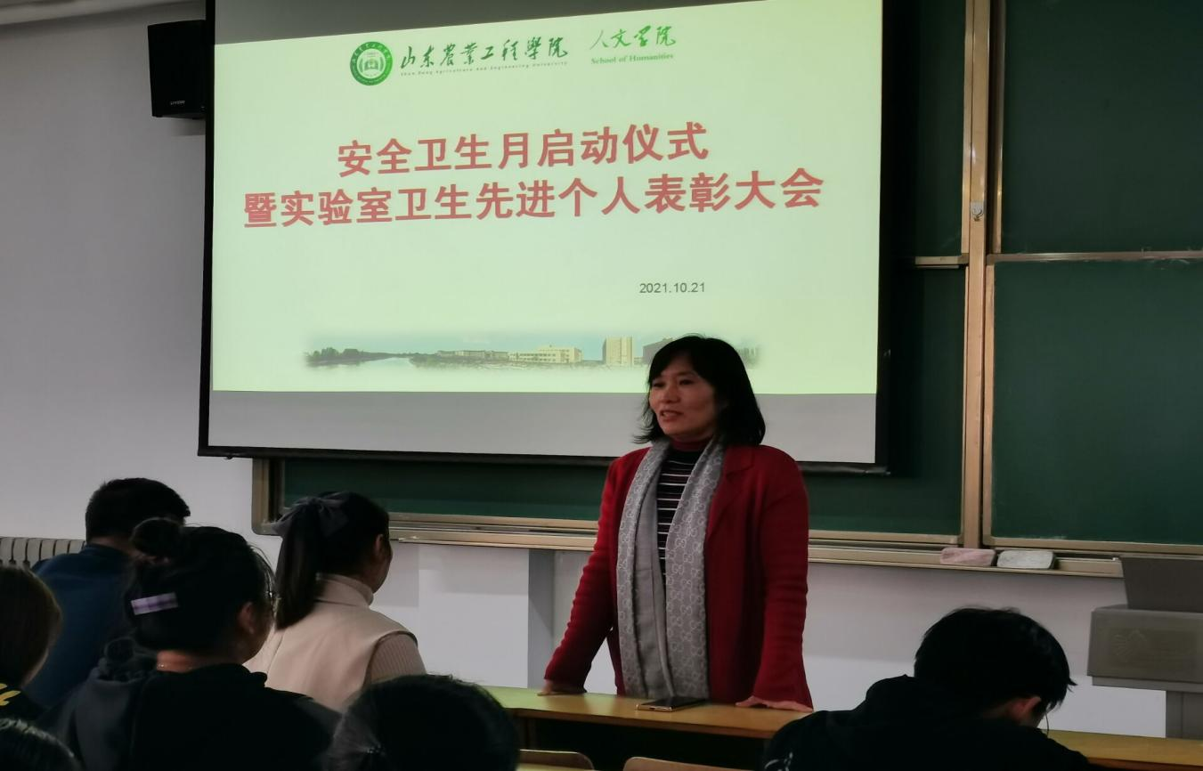 为了提高同学们的安全意识,促进学生养成良好的生活习惯和学习习惯,进而构建优良班风校风,提高学院育人质量,我院于10月21日在三号教学楼601室举行“安全卫生月”启动仪式既实验室卫生先进个人表彰大会。人文学院院长王晓霞、办公室副主任刘汉旺、团总支副书记潘保丽、部分学生会成员及各宿舍安全和实验室卫生负责人参加了本次会议。