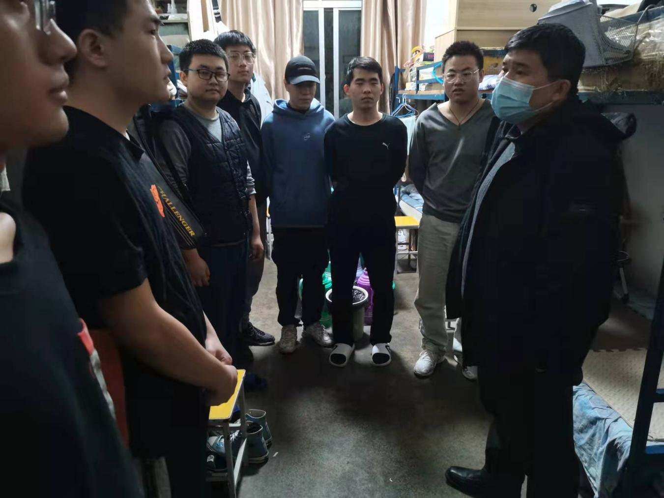 走访期间,徐书记首先了解同学们在疫情防控期间的线上学习、宿舍生活情况,叮嘱学生注意身体健康,鼓励大家多运动,加强自身锻炼,劳逸结合;按时参加线上课程,确保学习的效果和质量;规律作息,珍惜时间,认真上课,走访宿舍的同时重点强调了宿舍防疫要求。