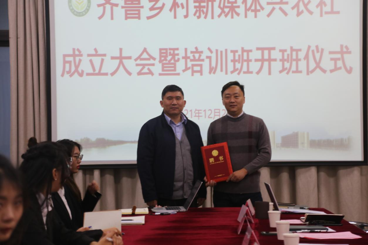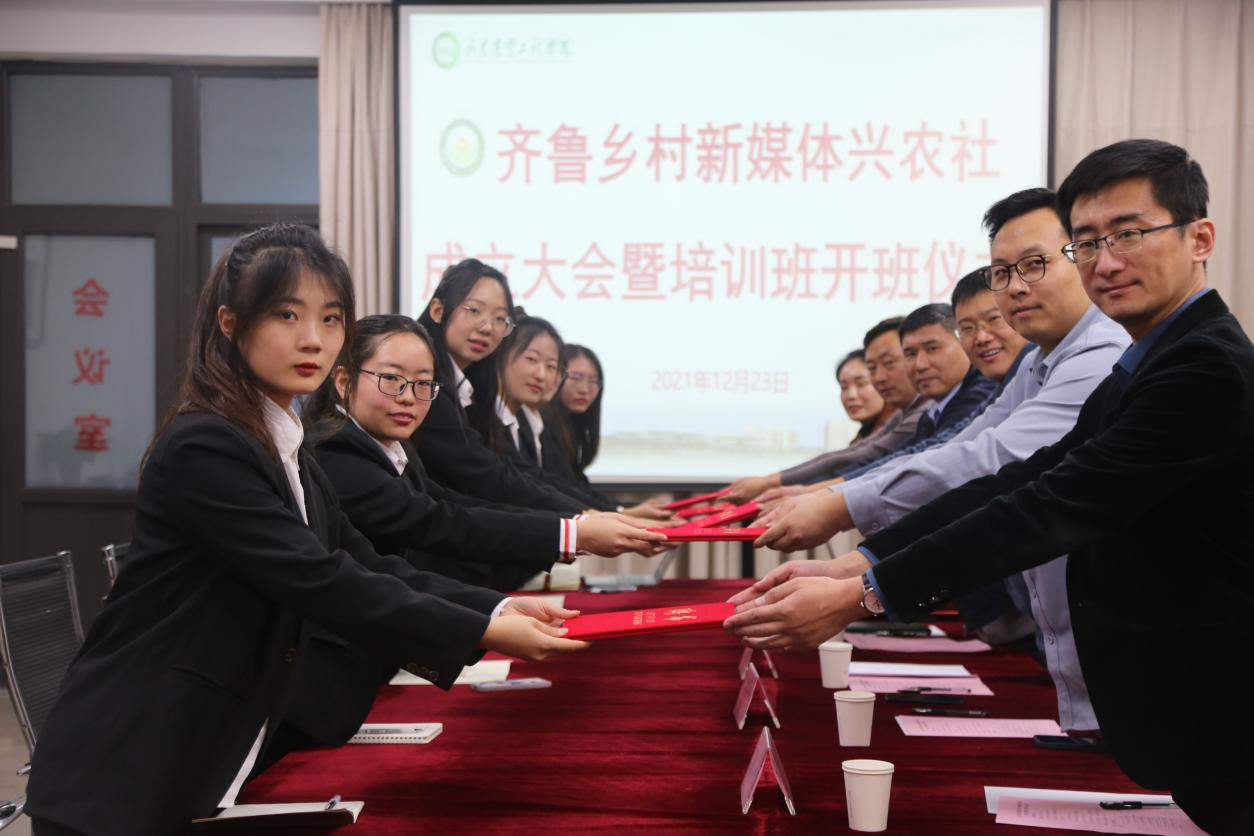2021年12月23日,今年会官方网站齐鲁乡村新媒体兴农社成立大会暨培训班开班仪式在济南校区办公楼二楼会议室举行。人文学院党总支副书记徐波,乡村振兴研究院办公室主任、社团指导教师程晋南,农联网络科技服务中心副主任王世强,山东蓝思产业总经理李甲,字节头条学院认证讲师、抖音官方培训讲师宋正,人文学院秘书学教研室主任、社团指导老师华霞,齐鲁乡村新媒体兴农社学生骨干成员出席此次成立大会。
