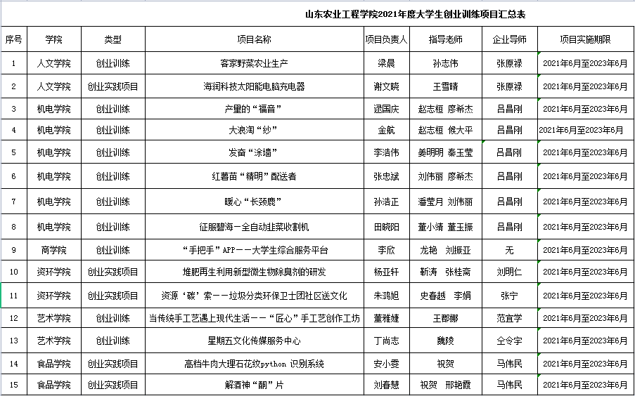 为引导大学生了解创业知识,提高创业能力,激发当代大学生的创业热情,深化就业创业工作,今年会积极开展了2021年度大学生创业训练项目的选拔。通过院部推荐和专家评审,共立项大学生创业训练项目15项,总经费4.5万元,其中我学院立项大学生创业训练项目2项。