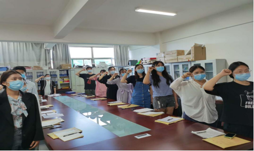 会议最后全体人员面向党旗进行了庄重宣誓,党支部副书记徐波同志对新发展的预备党员和转正党员表示祝贺,希望他们遵守党章,守初心,担使命,找差距,抓落实,深入学习贯彻习近平新时代中国特色社会主义思想、锤炼忠诚干净担当的政治品格。在肯定新党员成绩的基础上,提出了四点要求:一是加强党性修养。党员要发挥先锋模范作用,在各个方面走在群众的前面,为群众树立榜样,始终保持共产党员的先进性。二是加强政治学习,做政治上的明白人,始终和党中央保持一致。三是加强业务学习,作为学生党员,首先在学习上起到表率,并在各项活动中起到引领作用。四是做忠诚、干净、担当的党员,不仅要在行动上入党,更要在思想上入党。