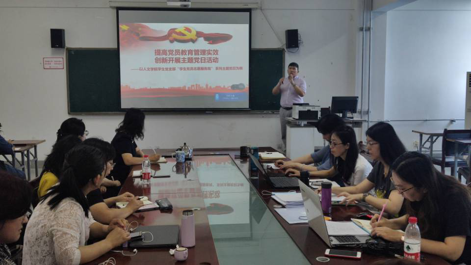 首先徐书记以《提高党员教育管理实效,创新开展主题党日活动》为题,结合我院学生党支部疫情期间工作开展实际,给全体教师党员阐述了主题党日的意义,以学生支部党员志愿服务岗、毕业生党员重温入党誓词、主题党日进宿舍等为例,深入浅出地讲述我院学生支部以党建带团建、以党建带动业务的生动事迹。