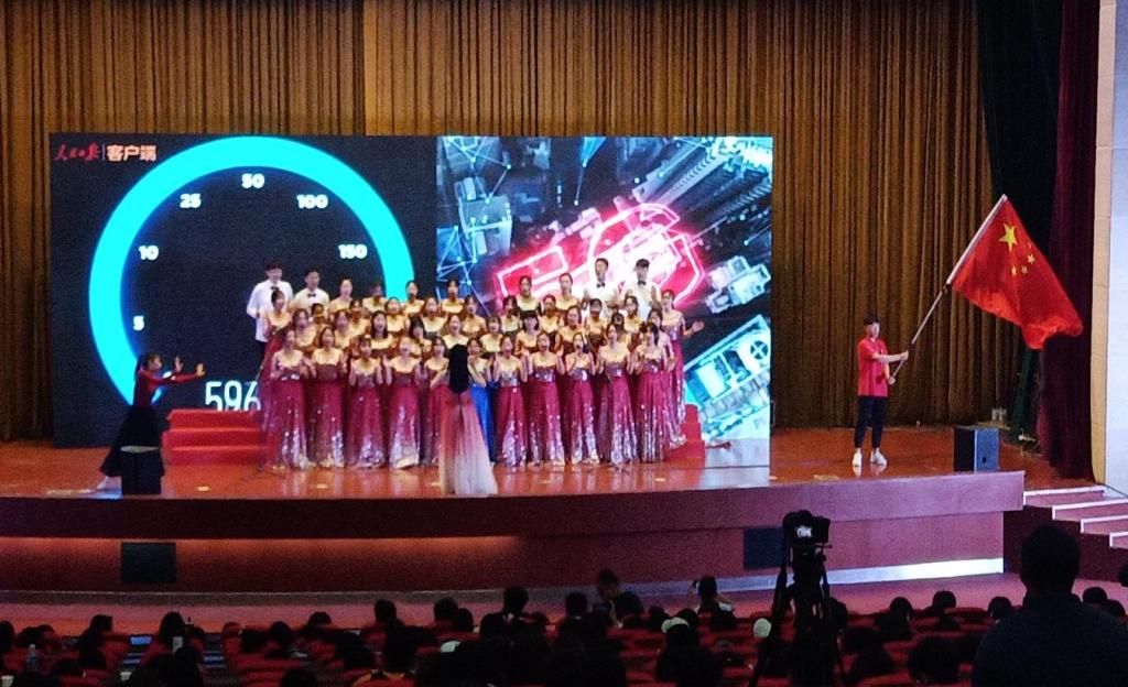 活动开始,主持人做了开场介绍并宣读比赛规则,各学院按顺序上台表演。我院合唱团带来的歌曲分别是《在灿烂阳光下》和《我爱你中国》,各位歌手们容光焕发,神采奕奕,旗手摇曳者五星红旗,舞者为歌手们伴舞,鲜艳的礼服使我院合唱团更加光彩夺目,展现了人文学子的精神风貌和爱国热情。回忆烽火历程,感受岁月如诗;同绘山河锦绣,唱响祖国颂歌。本次歌唱比赛得到了我院同学的积极响应。比赛期间,我院同学们热情洋溢,声音洪亮;指挥员手势准确,富有激情;台下观众掌声不断,一次次将比赛推向高潮。最后,伴随着主持人热情洋溢的解说和全场观众充满激情的欢呼和掌声,本次比赛正式拉下了帷幕!