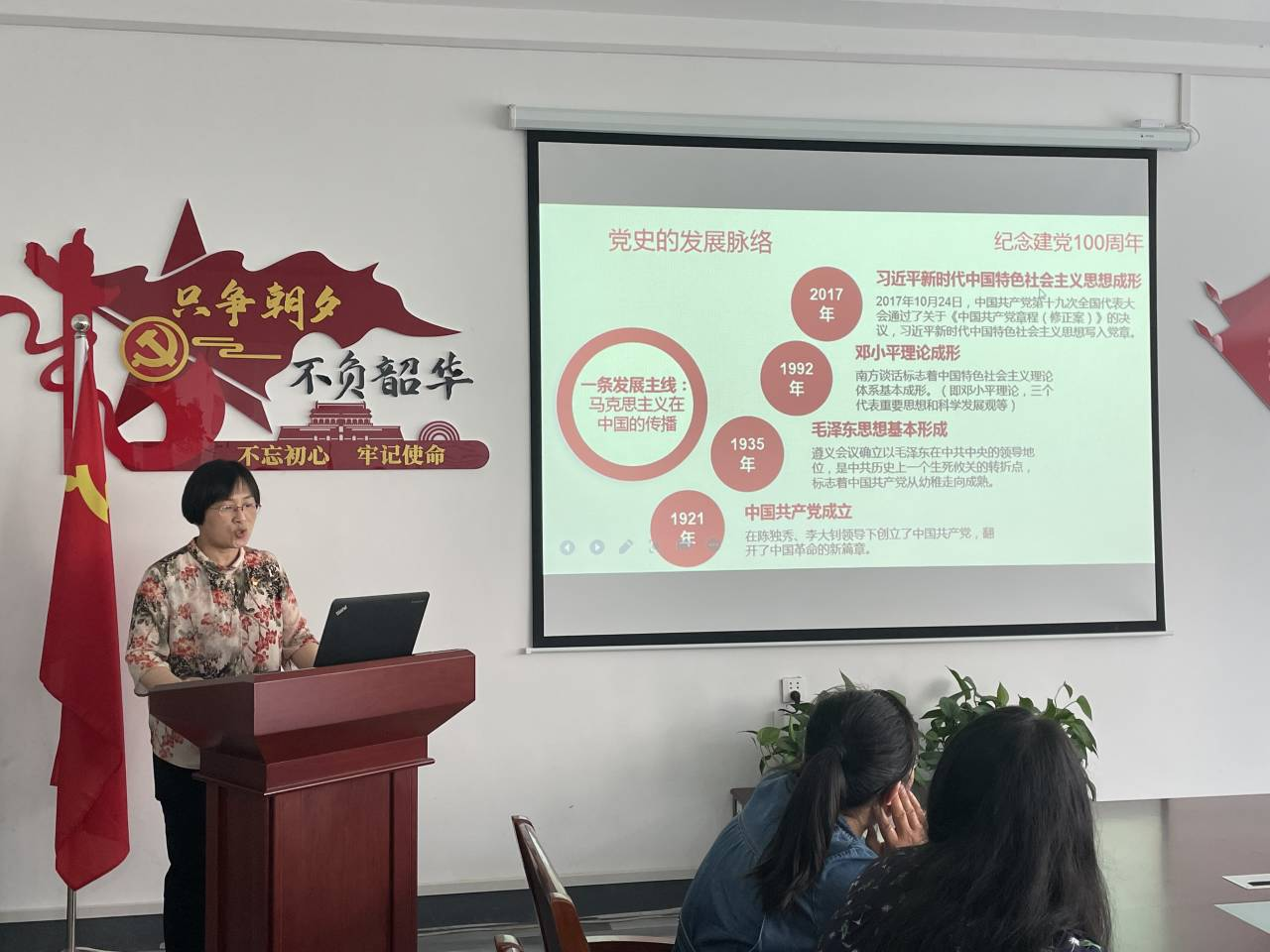 李剑眉同志首先明确了党史学习的重要意义,随级带领大家梳理了百年党史的发展脉络,即“一条主线,四个阶段”,然后讲解了各个历史阶段的特点、党的任务、成就和经验教训,最后得出结论---历史的选择,即:没有共产党就没有新中国,只有共产党才能发展中国,中国特色社会主义道路是中国必由之路和中国特色社会主义进入新时代。