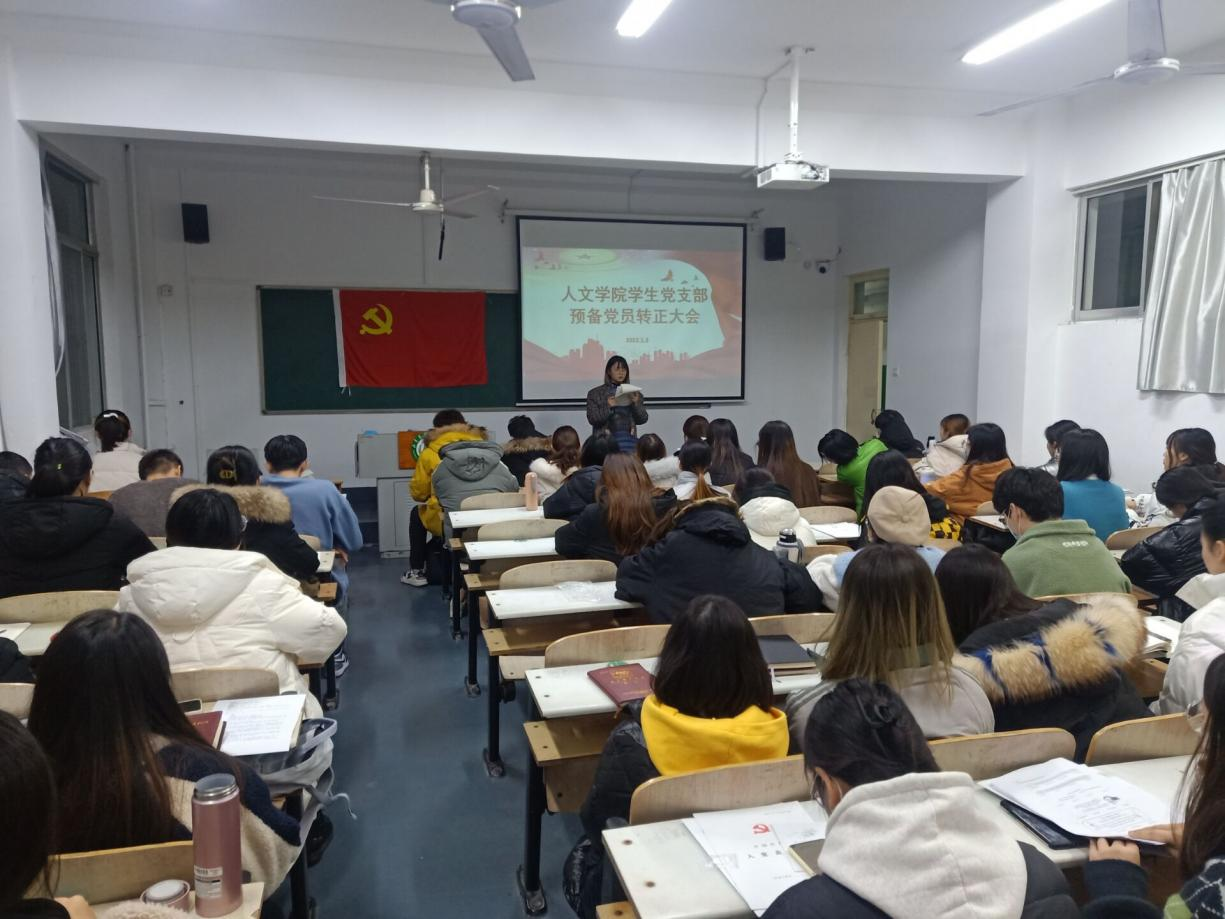 1月3日下午,人文学院学生党支部在3教309召开预备党员转正大会,讨论姚思涵等三名同志的转正申请。参加本次会议的有人文学院党总支副书记徐波、专职组织员朱峰、学生党支部书记孙志伟及人文学院学生党支部全体成员。会议由学生党支部书记孙志伟同志主持。