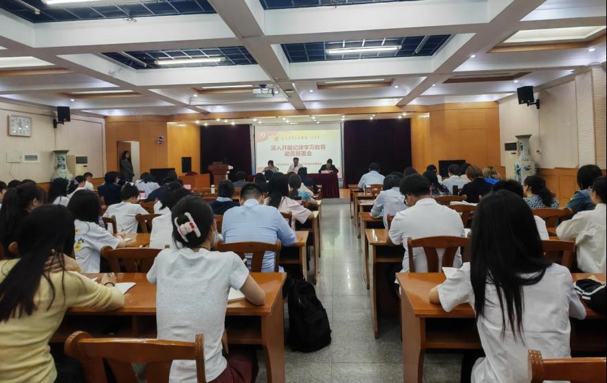 4月25日,人文学院党总支召开学习贯彻《中国共产党纪律处分条例》动员大会。会议由学院党总支书记主持,学院全体教师党员和学生党员参加了此次会议。