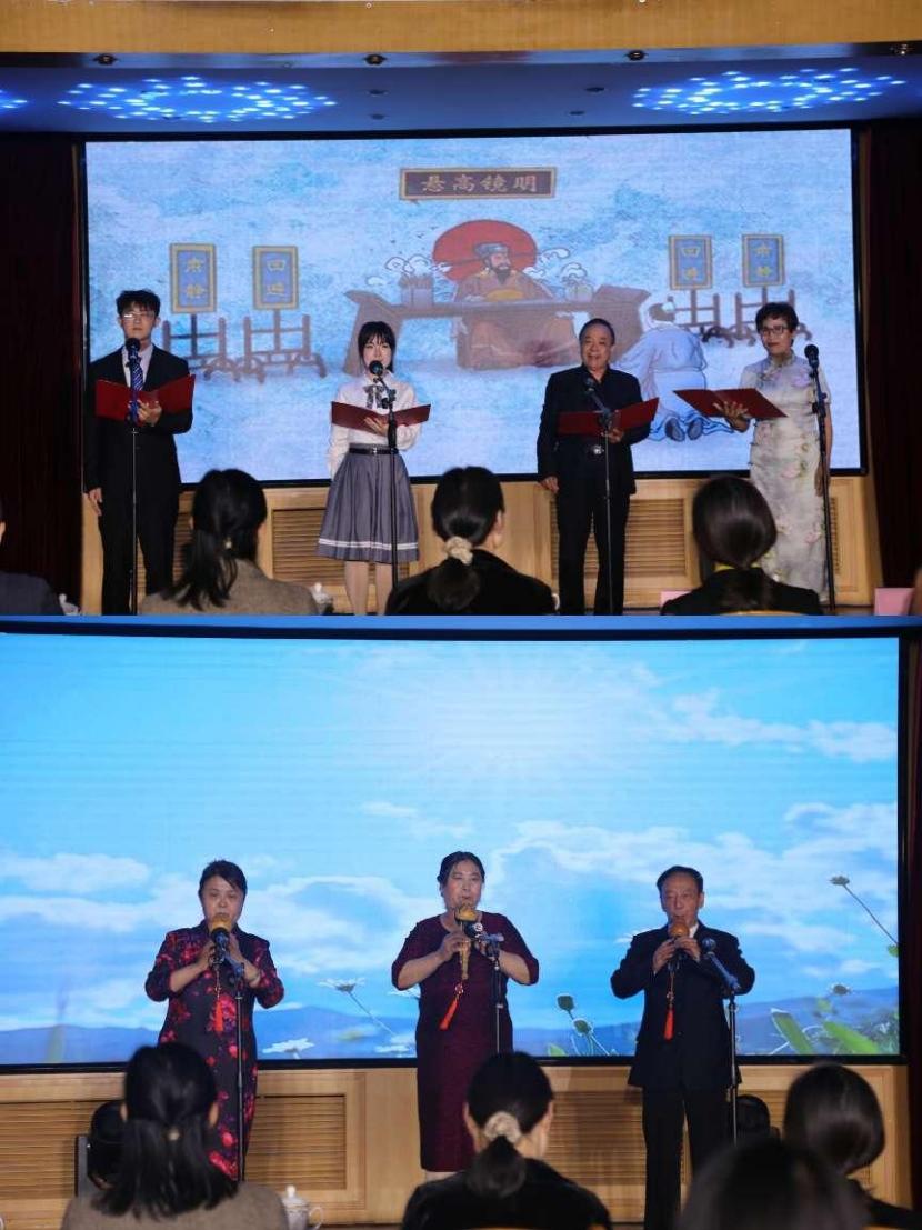 随后,观看了秘书周活动开幕式。开幕式节目精彩纷呈,形式多样,有舞蹈《荷梅映廉,汉韵风华》、独唱《如愿》、传统文化展示《廉承古韵》、朗诵、情景剧、说书等,深刻诠释了廉洁的内涵。离退休工作处教师与青年学生共同朗诵《廉洁之桥:刻度铭史,坐标引航》,回望廉洁历史,指引前行方向,把全场气氛推向了高潮。在文宬社同学的合唱《心同此愿》中,开幕式落下了帷幕。党员们接受了廉洁文化的洗礼,坚定了廉洁自律的信念。大家对秘书学专业学生们的才华与创造力赞不绝口,纷纷表示这种寓教于乐的方式让廉洁教育更加入脑入心。