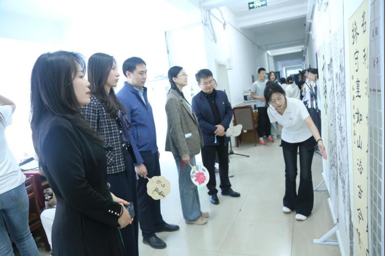 此次活动以“清风润文心,廉笔铸担当”人文学院第七届秘书周活动开幕式为契机,旨在加强双方党支部的交流与合作,共同推动党建工作的发展。活动伊始,领导嘉宾一行参观了明德书画社承办的“廉笔绘初心”主题书画展。60余幅学生作品围绕“廉洁从政”、“修身立德”、“清风校园”等主题,或笔锋刚劲,或意境深远,以艺术的形式展现了传统文化中的廉洁基因。党员们在欣赏艺术美的同时,也深受廉洁文化的熏陶。