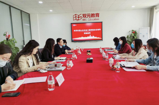 调研期间双元教育集团总经理刘虎城对于公司的情况进行了介绍。学院院长王晓霞介绍了我院办学概况、师资队伍、商务英语专业建设等情况。双方结合人才培养方案、教学模式、课程共建、实验室建设等方面进行了深入的交流与沟通。校企双方均表示应多联系交流,并期待开展深度合作。