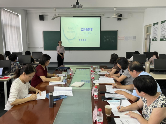 在磨课过程中,我院秘书学教研室田芸、霍改华两位教师分别就《秘书学概论》和《公共关系学》两门课程各自进行了45分钟的课堂展示。在《秘书学概论》课程授课过程中,田芸老师在熟练把握课程内容的前提下,充分利用学习通教学平台,把不同的授课内容根据需要实现了线上线下灵活切换,进一步提高了授课效果。《公共关系学》课程的授课中,霍改华老师能够把课堂知识完美的展现在课件中,实现了知识传授更直观、醒目的效果。督导专家对两位教师的授课也分别从教学理念、教学设计、教学目标、教学重难点、课程资源、课堂管理和课件制作等多个方面进行了点评,在肯定成绩的同时,也对内容的高阶性、方法的适用性、以及课程的思政性提出了改进意见和建议,非常有力地帮助授课教师及时发现并解决了授课过程中存在的问题。