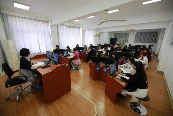 实验室主要服务我院商务英语、秘书学、应用韩语等专业课程及大学英语公共课程实训教学。为了给学生创造更好的实验实训条件,根据经费的落实情况,自2017年以来,我院共新建或改造7个实验室,姣好地满足了实验实训教学需要。