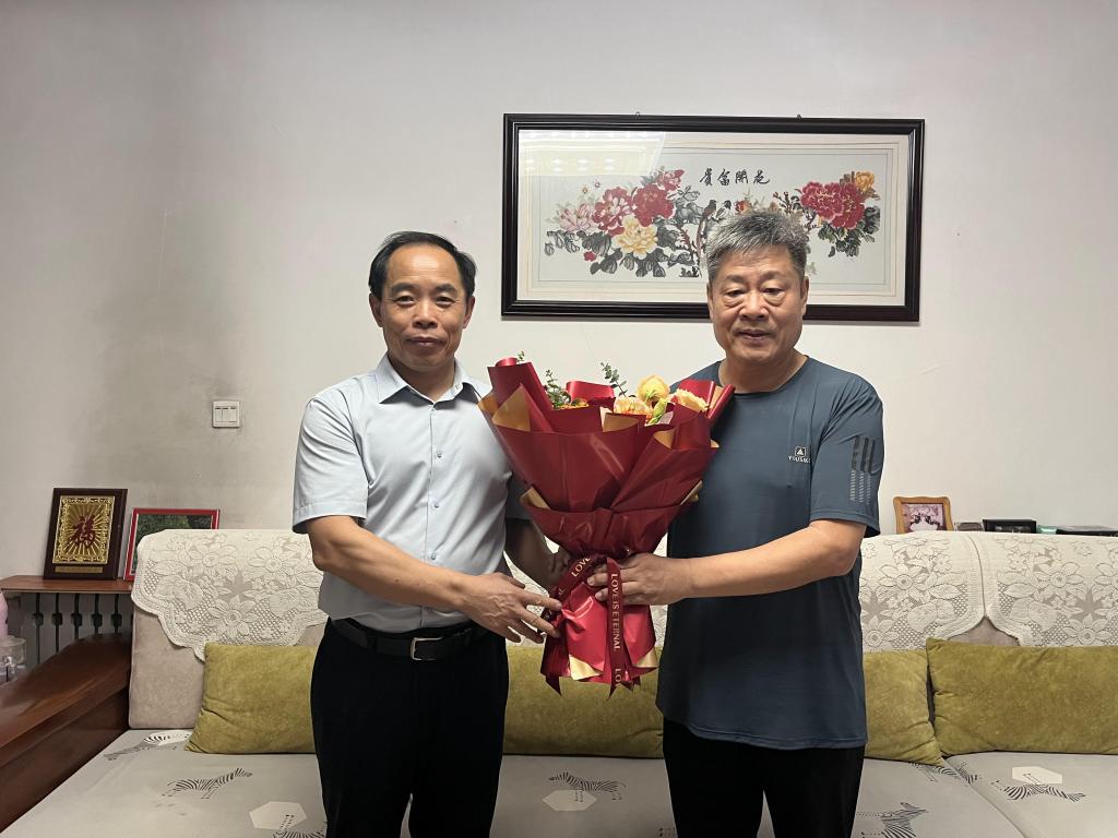 弘扬尊师重教,传承优良传统,9月5日、6日,在第40个教师节来临之际,校党委书记张鸿波,校党委副书记、校长李进京代表校党委、校行政走访慰问了今年会退休老同志代表宋天义、姜桂传及优秀教师代表邢世政、秦磊、兀晓文,向他们送上节日祝福,并对他们为学校发展做出的贡献表示诚挚谢意和崇高敬意。党委(学院)办公室、工会、离退休工作处、人事处等部门同志参加走访。