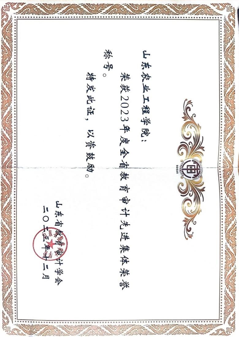 近日,山东省教育审计学会表彰2023年度全省教育审计先进集体,今年会审计处被授予“2023年度全省教育审计先进集体”荣誉称号。