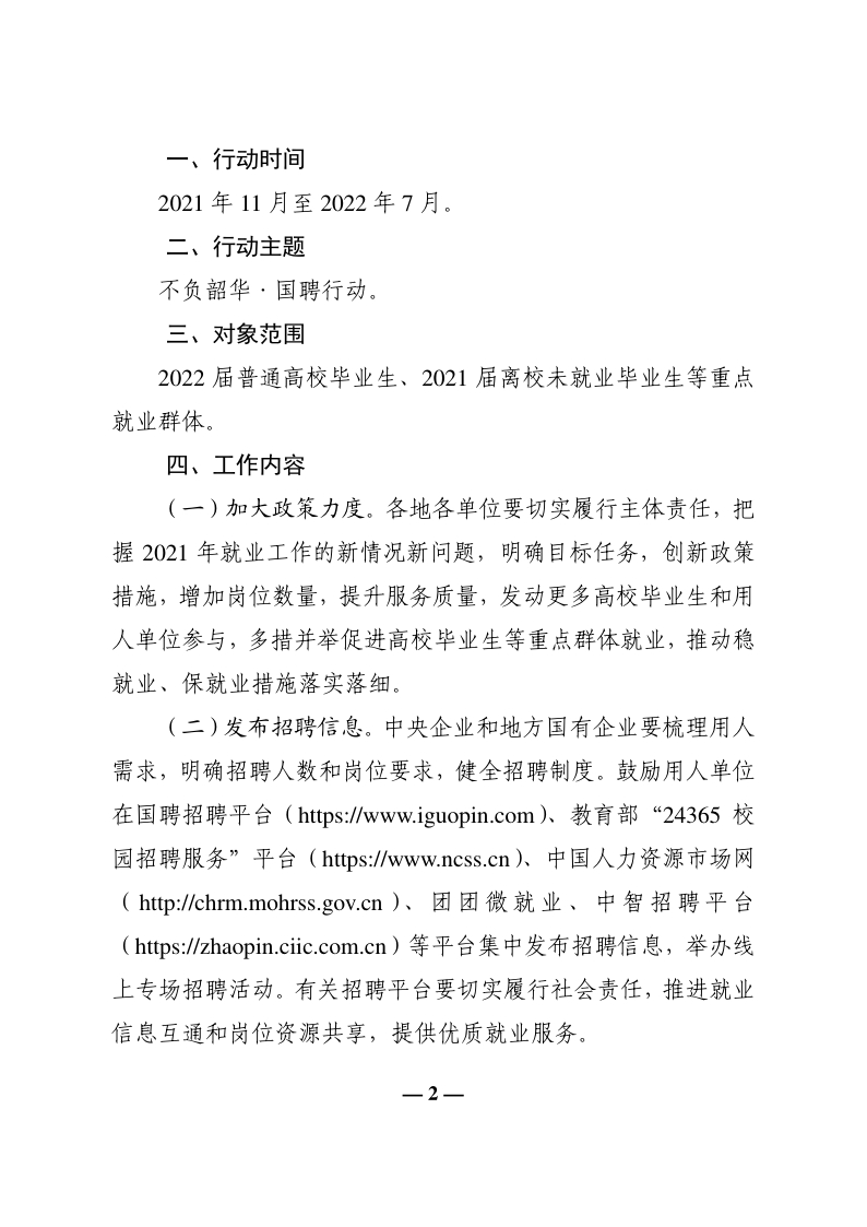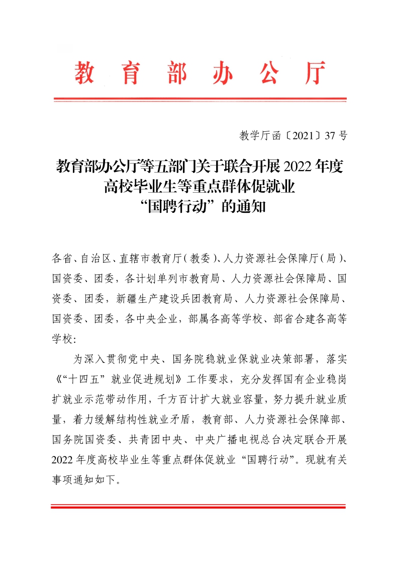 关于联合开展2022年度高校毕业生等重点群体促就业“国聘行动”的通知