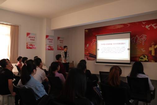活动在《我和我的祖国》歌声中开始,李存鑫书记讲述了本次主题党日活动的意义,新中国即将迎来她70岁生日,中国人民在中国共产党的领导下,从受帝国列强压迫的贫穷潦倒,到新中国的成立,再到重新屹立于世界东方,实现了从站起来、富起来到强起来的历史性飞跃。李存鑫书记强调,新时代青年要继承和弘扬中华民族的优秀传统,认真学习习近平新时代中国特色社会主义思想,坚定理想信念,努力学习,要有梦想,肯奋斗,讲奉献,要不忘初心,砥砺前行,努力为实现中华民族伟大复兴的中国梦而奋斗。