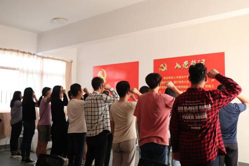 随后全体党员面向党旗集体宣誓,重温入党誓词,铮铮誓言牢记心中。