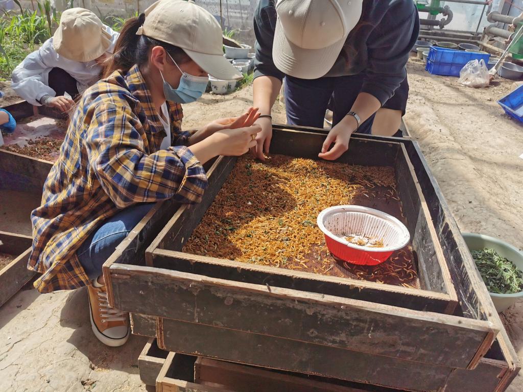 随后,同学们一起走进大田和温室,亲自参与了种植和养殖等管理劳作,并对玉米、小麦的育种,黄粉虫、黑水虻等昆虫转化技术有了更深入的认识,切身体会到了智慧农业、循环农业的应用价值和前景,提高了自身农业实践技能。