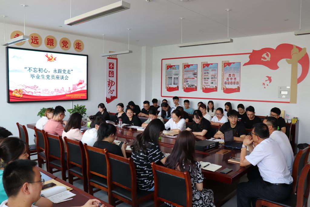 6月22日上午,我院学生党支部在理工西楼B213室举行“不忘初心,永跟党走”毕业生党员座谈会。学院党总支书记许武强、毕业班辅导员张雨桐及全体毕业生党员参加了座谈会,会议由学生党支部书记李存鑫主持。
