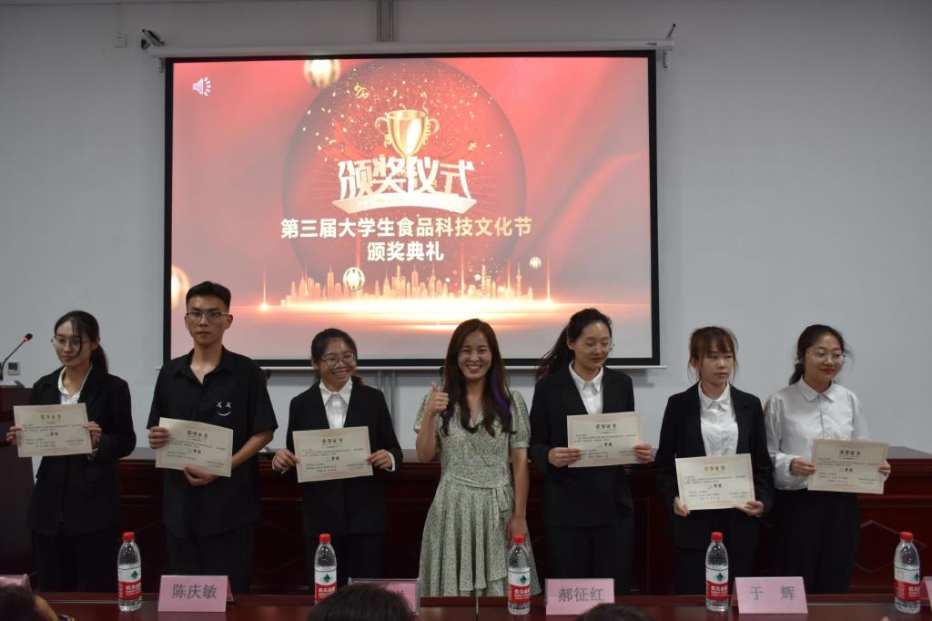 7月1日下午,我院第三届大学生食品科技文化节颁奖典礼在理工西楼B103报告厅隆重举行。校团委教师兼职副书记董小靖,我院副院长于洋、团总支书记王甜甜、教师郝征红、陈庆敏等出席典礼并为同学颁奖。于克学院长、许武强书记通过视频对食品科技文化节的圆满落幕表示祝贺。