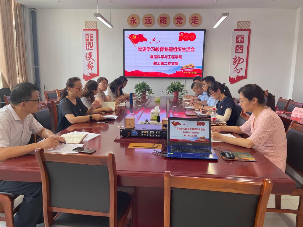 我院教工第二党支部于2021年7月8日上午在淄博校区理工西楼B213室召开了党史学习教育专题组织生活会。会议邀请我院党总支书记许武强出席,支部书记陈庆敏主持会议。