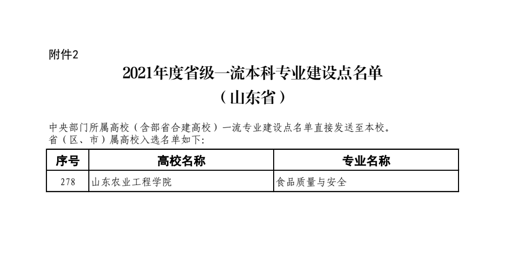 日前,教育部办公厅公布《2021年度国家级和省级一流本科专业建设点名单的通知》,我院食品质量与安全本科专业入选获批“省级一流本科专业建设点”。