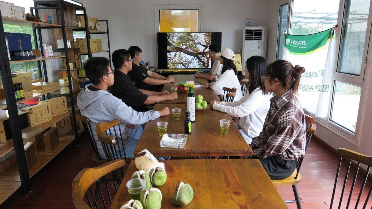 当地工作人员李晓童向团队成员介绍了该公司最新的发展规划,他们致力于打造乡村田园生态园,保证旅客除了在观赏文冠果的同时还可以欣赏乡村的风景。据此,团队成员了解到该公司将文冠果种植、科研、深加工、生产、品牌、展览统一起来,发展成以文冠果为核心的健康木本油料产业集群,同时形成了独具特色的文冠果种质资源基因库、新良品种选育、高标准示范、生物基产品加工、文化创意、特色经济林生态旅游、生物医药产业为一体的农林高新技术产业综合平台,该公司在进行文冠果深加工的同时带动了乡村振兴产业的发展。