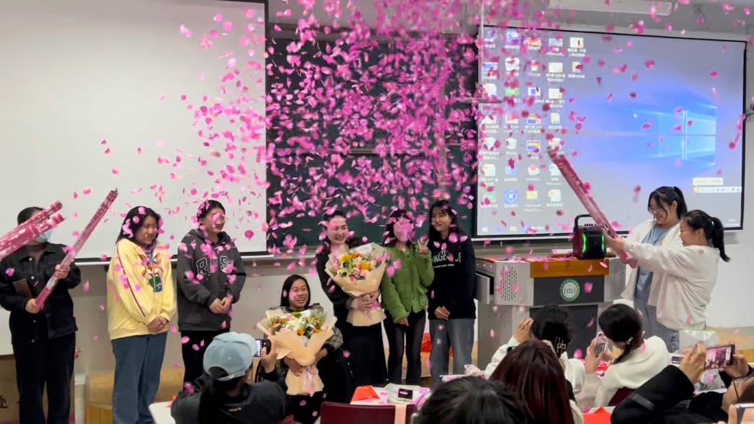 报告会上,淄博市新阳光残疾人互助家园负责人,团中央全国榜样人物、山东省青年五四奖章等荣誉获得者聂淑杰作了《心怀梦想,折翅也能飞翔》的事迹报告。淄博市中心医院护士长助理,淄博市最美抗疫护士,淄博市2022年宣讲大赛一等奖获得者孙月作了《没有硝烟的战场》事迹报告。聂淑杰和孙月还向部分同学送上了生日礼物和祝福,解答了学生们的疑惑,报告会结束时与学生们共唱《歌唱祖国》。