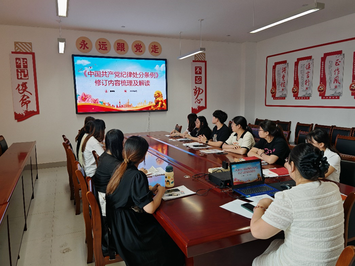 董春艳就《中国共产党纪律处分条例》修订的背景、意义及主要内容进行了讲解,并结合具体案例对新修订的内容进行了解读。她强调,要深入学习和贯彻《条例》内容,严守纪律,时刻用先进性标准审视自己;要把党的纪律内化为严守政治纪律的行动自觉。