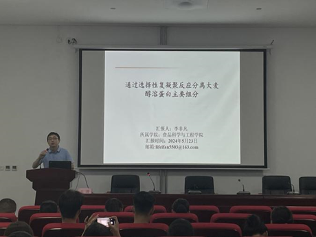 2024年5月23日,我院李非凡博士在淄博校区理工西楼B103为我院师生作了题为“通过选择性复凝聚反应分离大麦醇溶蛋白主要组分”的学术报告。