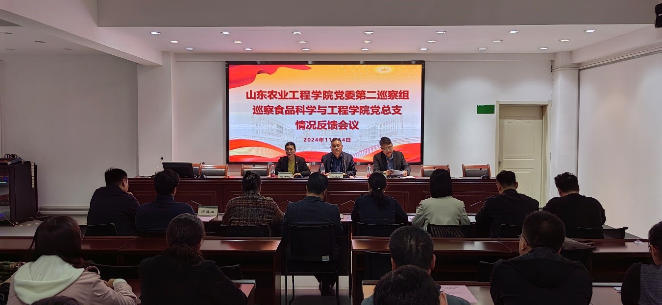 2024年11月14日,学校党委第二巡察组向食品科学与工程学院党总支反馈巡察情况。校党委副书记、巡察工作领导小组副组长张业赏出席反馈会议。