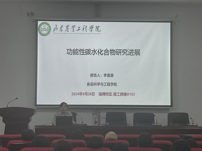 2024年9月26日,我院李苗苗副教授在淄博校区理工西楼B103为我院师生作了题为“功能性碳水化合物研究进展”的学术报告。