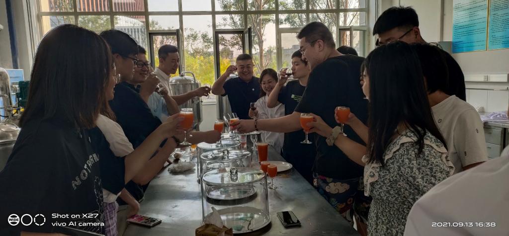 图1 学生品尝啤酒酿造开放实验室项目自酿酒