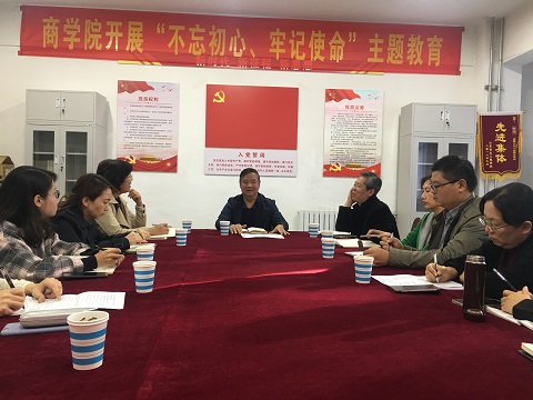 最后,王西奎对商学院近年来在师资队伍建设、科研水平提升等方面给予了肯定。并强调指出,要通过开展“不忘初心、牢记使命”主题教育,切实解决好制约学校发展的瓶颈因素,以应用型人才培养为导向,加强对青年教师的培训、学历学位的提升和实践能力的锻炼,提高自身综合业务水平,促进落实立德树人根本任务。