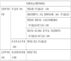 本学期拟将《中级财务会计》课程最终考核成绩由原来期末考核成绩占40%、过程性考核成绩占60%,改成期末考核成绩占50%、过程性考核成绩占50%,进一步提高过程性评价比重。其中,本学期过程性考核内容和成绩,一是借助学习通线上资源及统计功能;二是教师线下作业及学生线下记录,实现了将过程性评价纳入最终考核之中,特别提高过程性评价的比重,更好激发学生日常学习的兴趣,注重过程性考核内容,改善反复重修的现状。