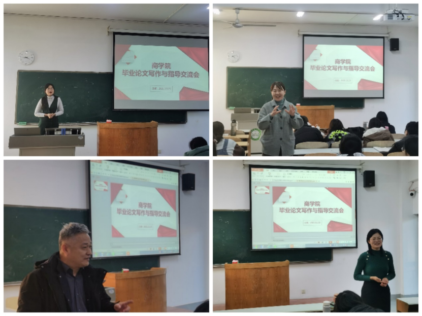 商学院聘请了林业学院的迟晓君副院长给学生们详细讲解了毕业论文工作流程、论文写作方法及论文归档等问题;商学院朱延琳、张新、季荣花等三位老师和学生们交流了论文写作的具体要求、论文写作技巧及注意事项等学生关心的问题,并回答了学生们提出的问题。