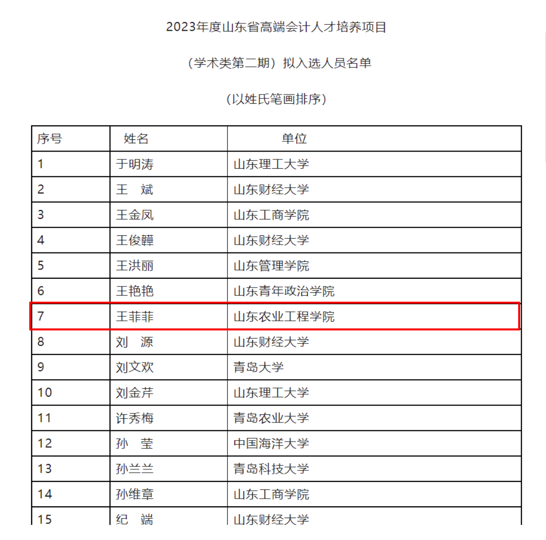 我院王菲菲副教授入选2023年度山东省高端会计人才培养项目