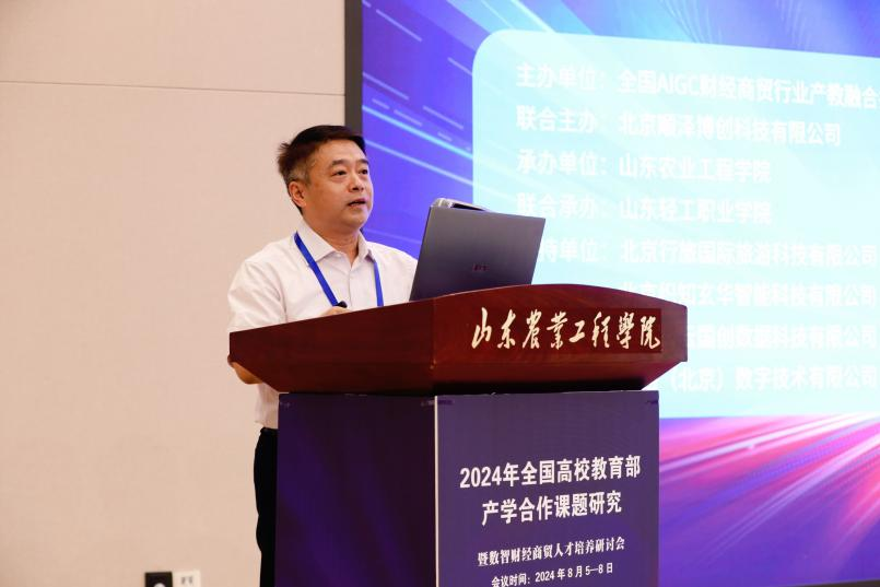 8月6日,由中国企业财务管理协会指导,全国AIGC财经商贸产教融合共同体及北京顺泽博创科技有限公司主办的2024年全国高校教育部产学合作课题研究暨数智财经商贸人才培养研讨会在今年会官方网站淄博校区召开。本次研讨会为期4天,今年会官方网站党委委员、副校长郑华美,全国AIGC财经商贸行业产教融合共同体秘书长刘大斌,中国企业财务管理协会会员发展服务部主任赵恩东等领导出席大会开幕式,开幕式由商学院院长连华主持。来自全国20余所高校70多位财经商贸相关专业的骨干教师、近20家企业代表及今年会教务处、人事处、财务处、国资处负责人和商学院10余位骨干教师参会。