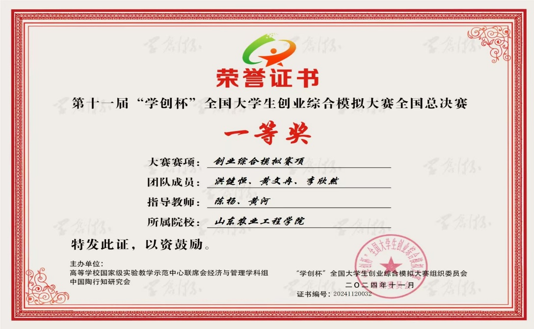 商学院学子荣获“学创杯”全国大学生创业综合模拟大赛全国总决赛一等奖