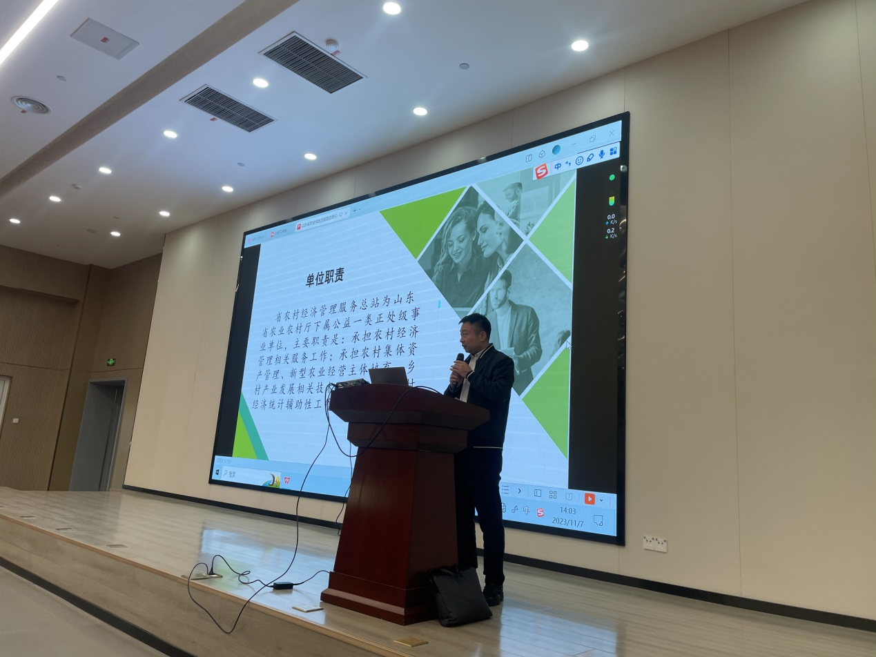 11月7日上午,山东省农业农村厅农村经济管理服务总站高级经济师孟磊受邀在淄博校区文法西楼多功能厅作了题为“山东省农业绿色发展路径研究”的报告。报告会由商学院科研秘书邢文龙主持,商学院部分教师和学生参加了报告会。